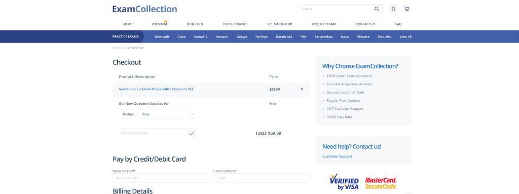 ExamCollection, which is an upfront cost ($69.99) without discounts stated on the website, may entice less budget-conscious individuals. The additional features like detailed explanations and AI machines on