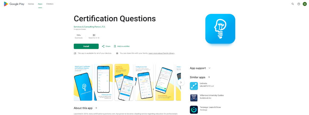 ExamCollection does not offer a mobile app at all. Instead, the site redirects users to a link in a separate tab for downloading third-party applications from Google Play to access exam simulations. Naturally, this complicates accessing any certification tests via mobile devices.