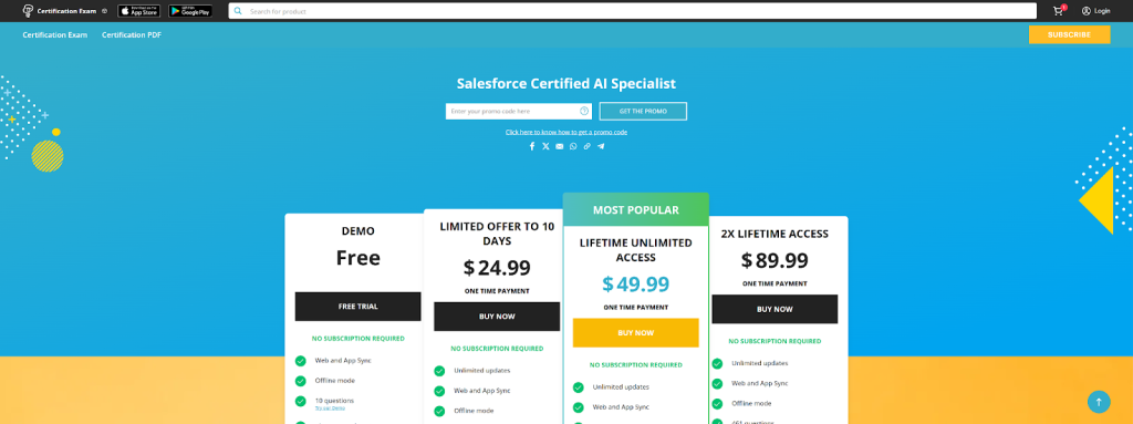 Earning the Salesforce AI Specialist Certification is a fantastic step towards a future-proof career. By thoroughly preparing with excellent Salesforce Admin Certification Questions to build a strong foundation and wisely using resources like Salesforce AI Specialist Certification Dumps, you can significantly boost your chances of success. Platforms like Certification-Exam offer a more comprehensive and user-friendly experience compared to ExamCollection, with features like detailed explanations and a dedicated mobile app that truly support your learning. Stay consistent, embrace continuous learning, and you’ll be well on your way to achieving your certification goals and advancing your professional journey in the dynamic world of Salesforce.